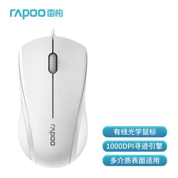 雷柏(Rapoo)N1200有线鼠标办公鼠标轻音鼠标对称鼠标