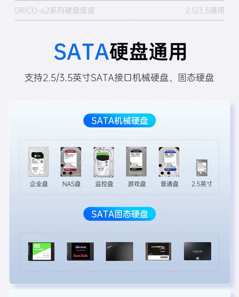 奥睿科(ORICO)硬盘盒底座3.5/2.5英寸SATA机械