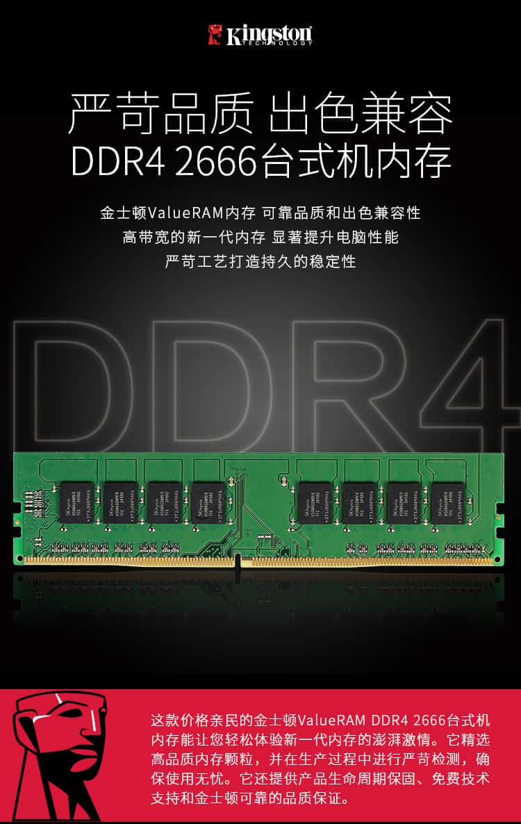 金士顿(Kingston)8GBDDR42666台式机内存条