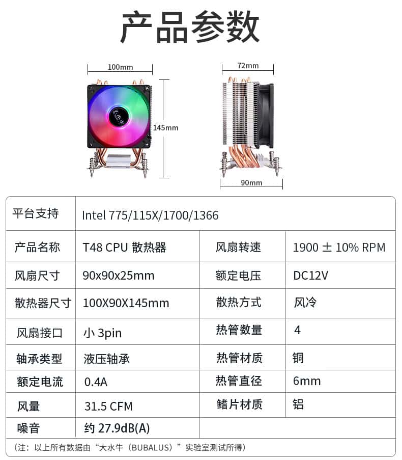 大水牛(BUBALUS)T484热管CPU风冷散热器(支持i