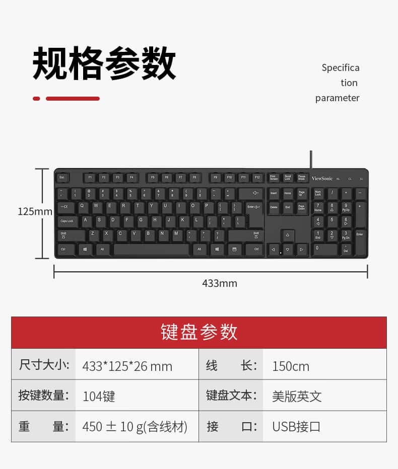 优派(ViewSonic)/KU254有线办公键盘/104键