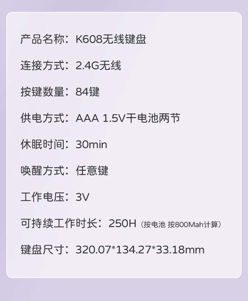 航世(BOW)K608无线键盘笔记本台式电脑家用办公通用可爱