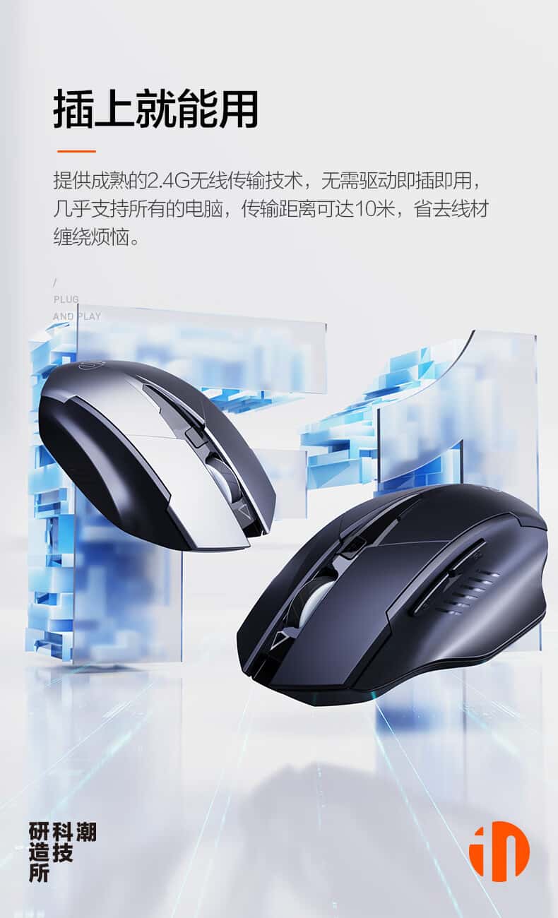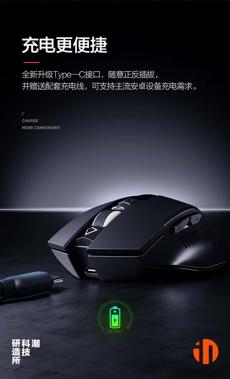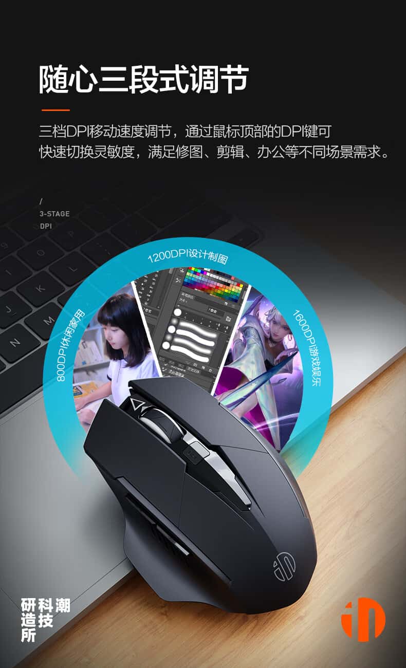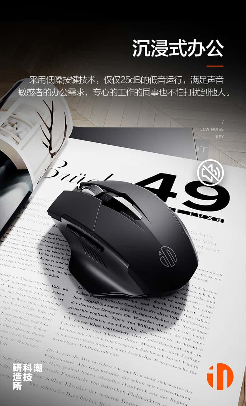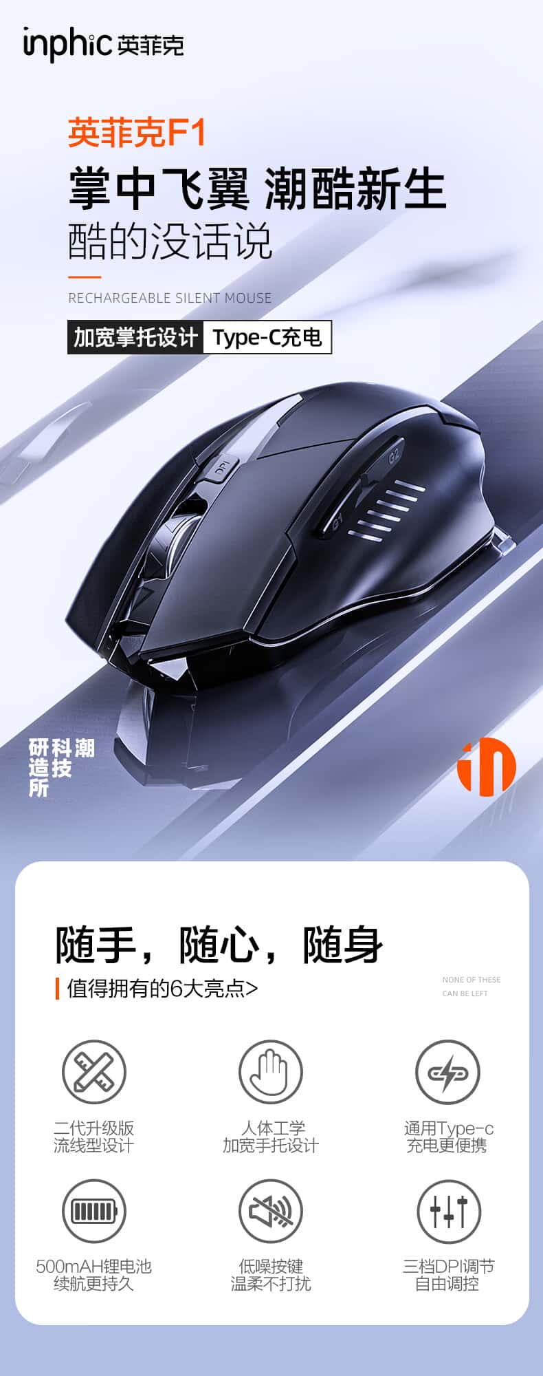 英菲克(INPHIC)F1无线鼠标可充电轻音办公人体工学电脑