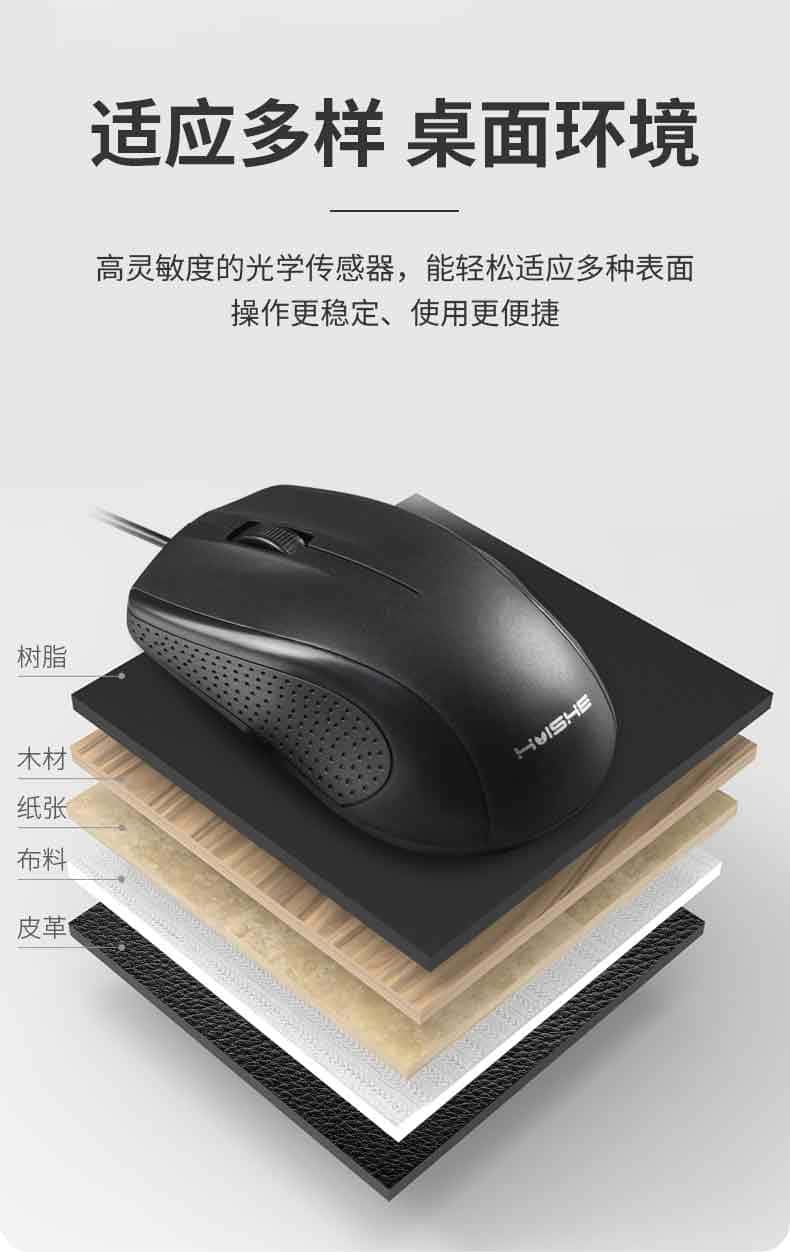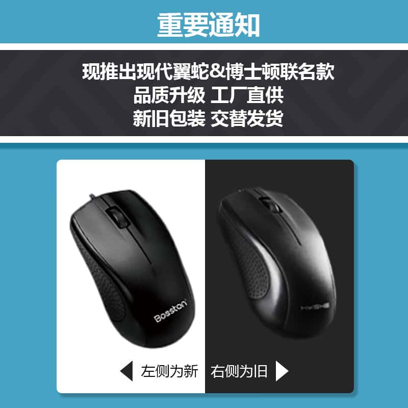 现代翼蛇&博士顿联名款M10有线鼠标办公鼠标人体工学USB通