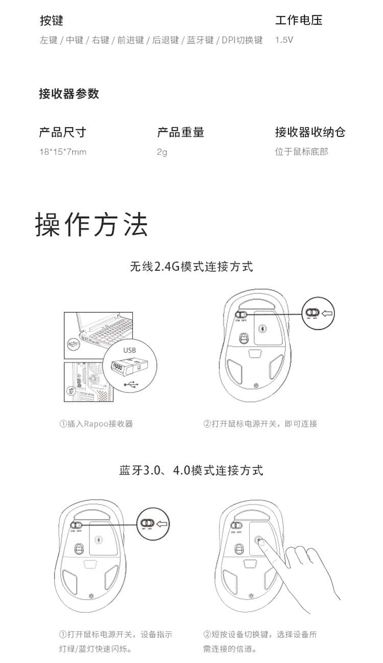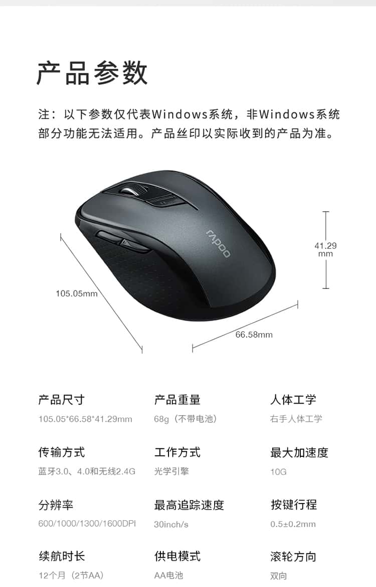 雷柏(Rapoo)M500G无线蓝牙多模鼠标办公便携轻音鼠标
